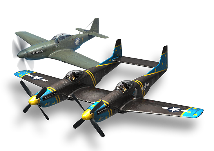 Horsepower: F-82E Twin Mustang + P-51K Mustang |