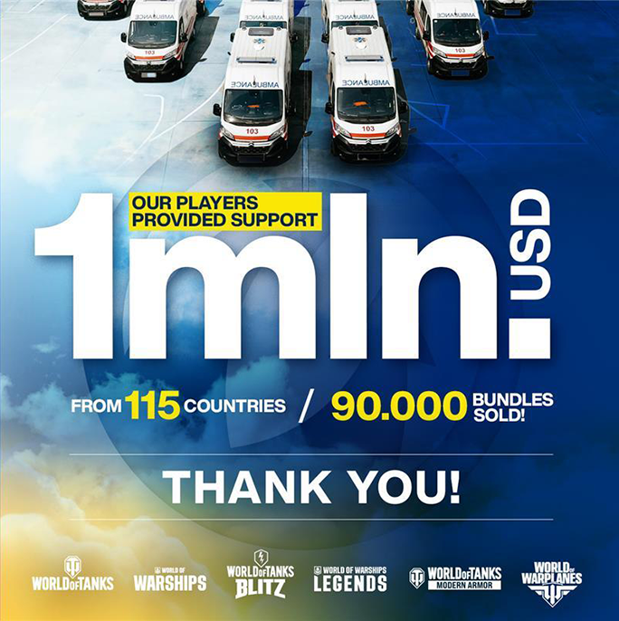 A total of 90 thousand bundles were purchased, with players from 115 countries participating in the campaign. As a result, Wargaming has transferred 1,072,940 USD via the UNITED24 platform for the acquisition of C-type ambulances that will take on the duty to save lives.