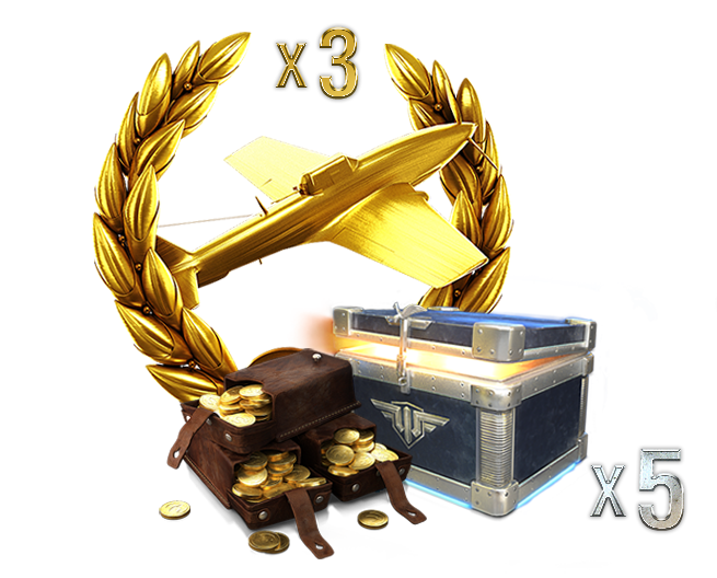 You'll also receive gold and Gyrfalcon Trophies with a chance to receive three guaranteed prizes: days of Premium Account, Premium aircraft, Free XP, experimental equipment, materials, and much more!