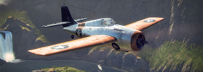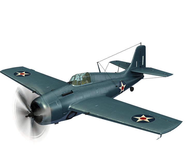 Grumman XF4F-3! Its four machine guns are always ready to support an ally with dense fire. This warbird's high maneuverability makes it a dangerous opponent at mid-altitudes. Even the most agile enemies won't be able to escape its multiple machine guns.