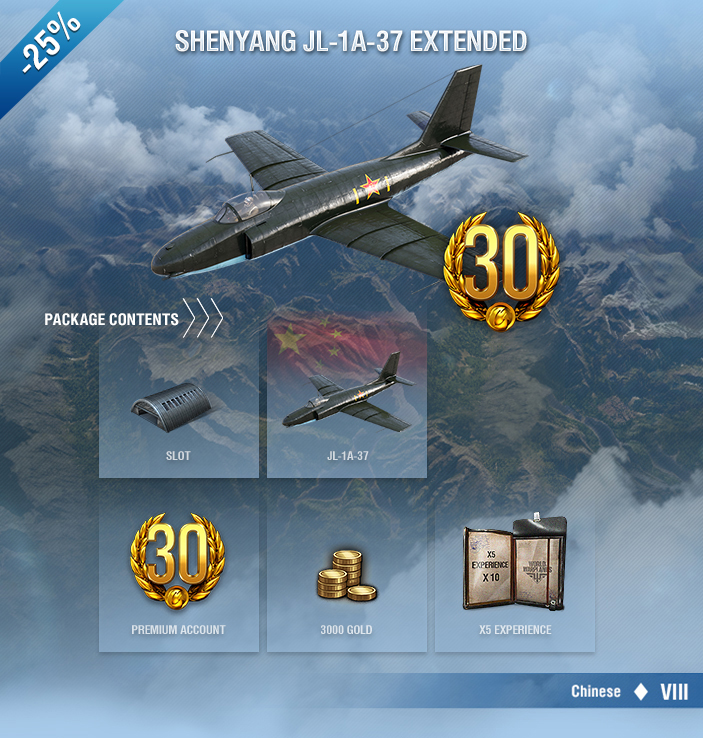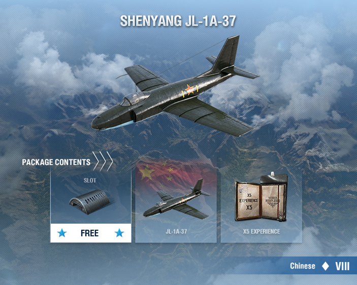 Shenyang JL-1A-37 is a Chinese Tier VIII fighter. It is a jet-powered, high-altitude aircraft with a powerful engine and good boost. Its power lies in the boom-and-zoom and hit-and-run tactics. Rely on its excellent speed performance to disengage from the enemy and to reach your prey in the blink of an eye. Once you catch up with a target, rain down the might of your 37 mm cannon. If you happen to encounter a decent opponent in terms of speed, you will definitely find something to challenge it with. Use the handling of the JL-1A-37 to your advantage, force the enemy into maneuvering combat, and destroy it in a turning duel.