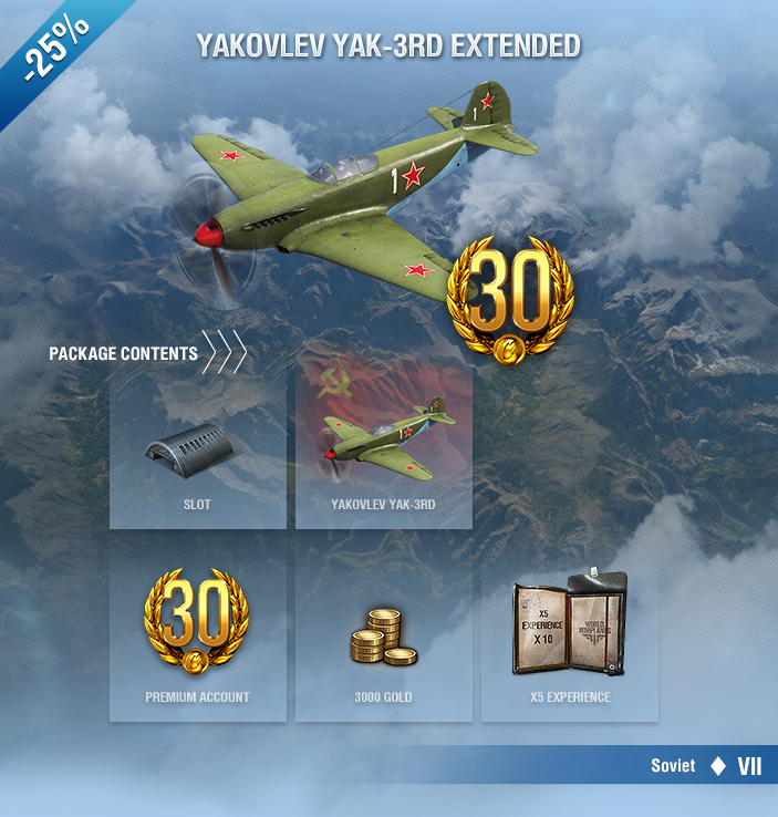 Yakovlev Yak-3RD is a Soviet Tier VII fighter featuring an auxiliary liquid-fuel rocket engine and very powerful boost. The combination of excellent maneuverability and high dynamics allow it to fight at a wide range of altitudes. The armament of the Yak-3RD consists of a single gun. But it’s a dangerous one! This aircraft resembles a fast and agile fencer armed with a thin, but very sharp blade. The accurate, rapid-firing, 23 mm Tier VIII НР-23 cannon fitted on the Yak-3RD can easily get a more durable and heavily armed enemy into trouble.