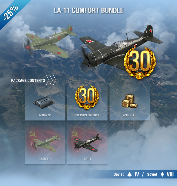 - Lavochkin LaGG-3 series 4, a rare Soviet Tier IV multirole fighter with a powerful autocannon and machine guns. This aircraft is capable of accelerating to a high speed, turnfighting, and attacking ground targets with rockets.