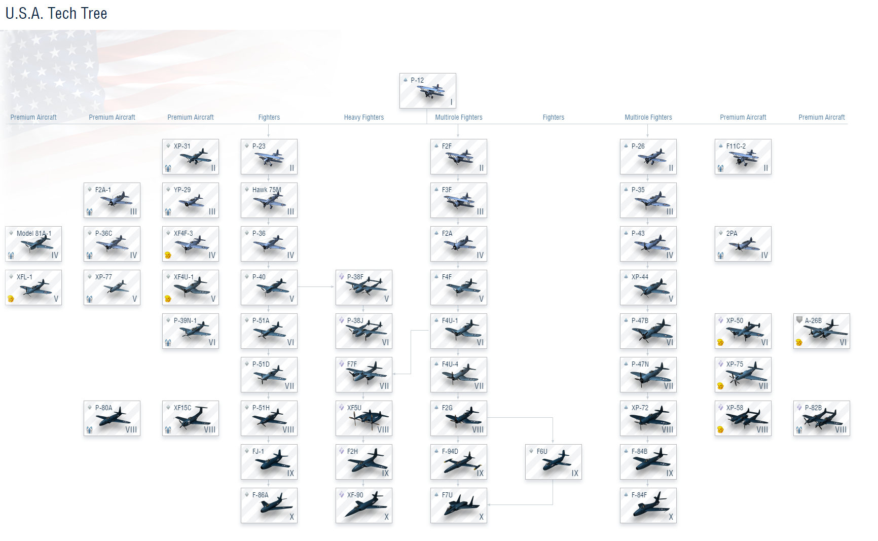 American fighters are mainly intended for medium-and high-altitude combat, using vertical maneuvers. The prime representatives are the P-51 Mustang and F4U Corsair. The guns are also built for air superiority, and optimized for medium-to-high altitudes.
