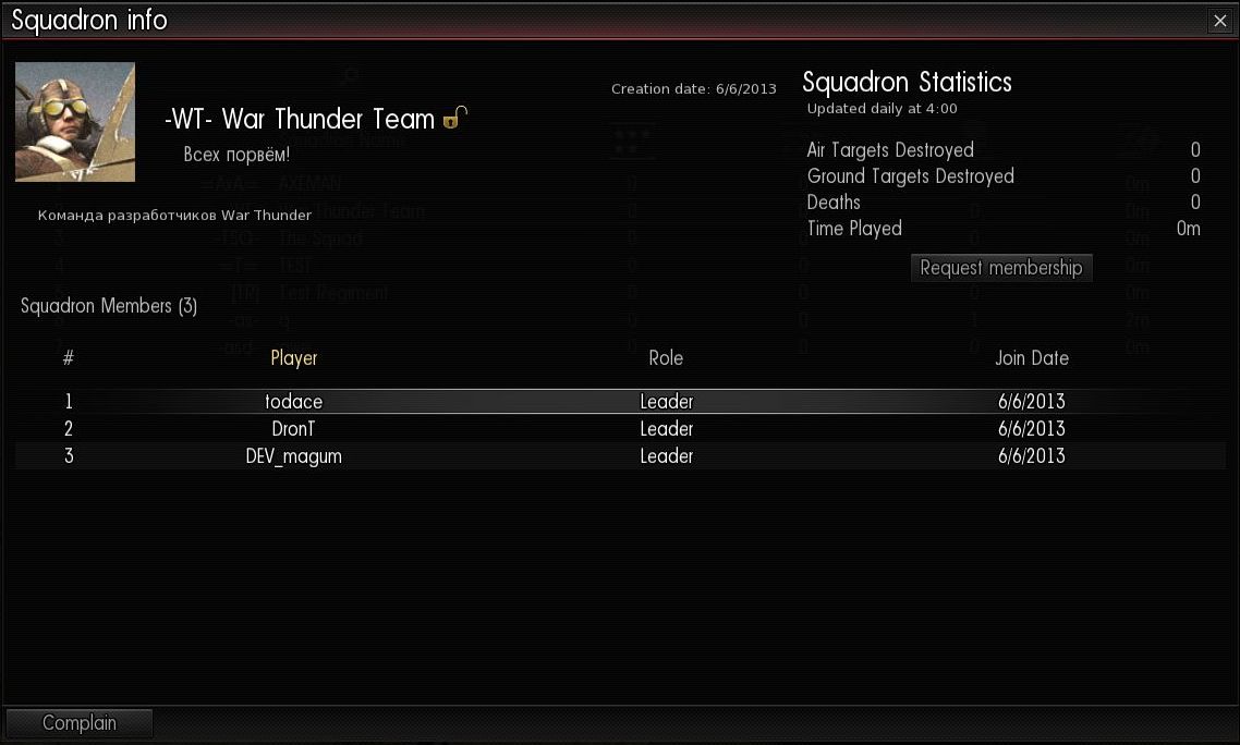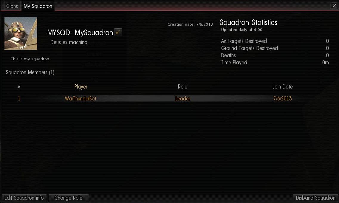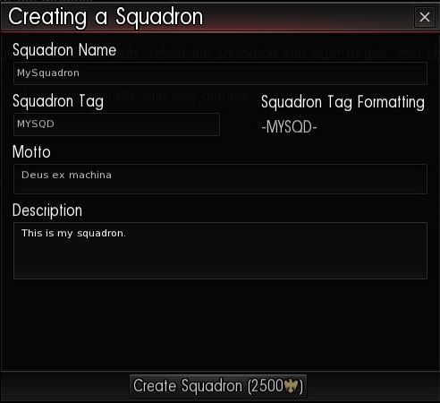 Každá letka má své unikátní moto, popis, jméno a tag. Maximální počet hráčů je 128. Mimo to má každá letka svůj vlastní chat, kde spolu můžou členové komunikovat. Každý člen má svojí vlastní hodnost - velitel (leader), důstojník (officer) a vojín (private).